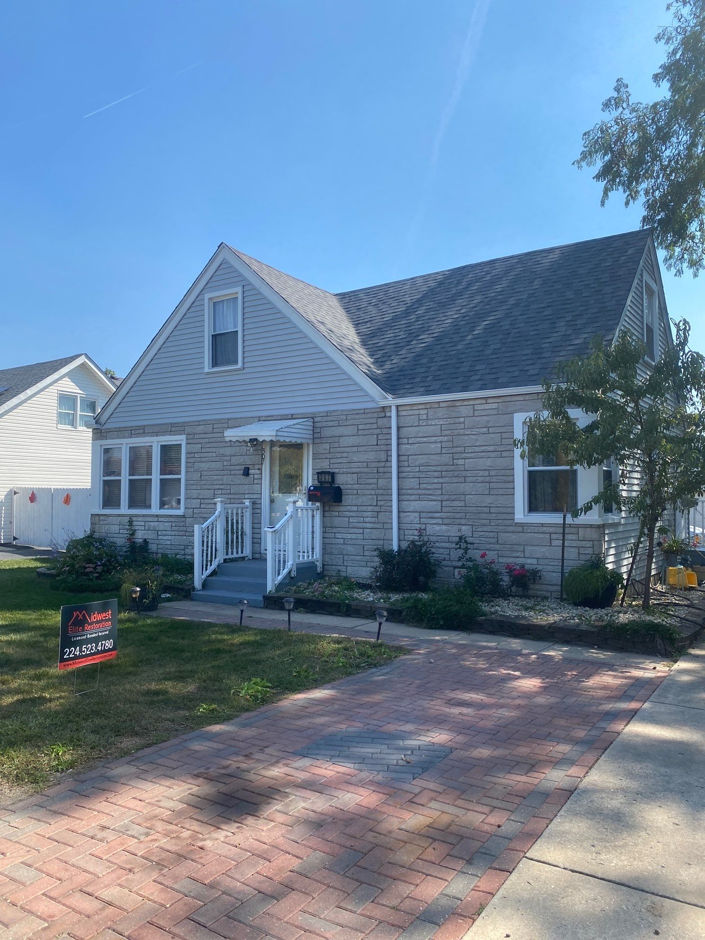 Reroofed the home using IKO Cambridge Charcoal Grey Shingles and did Restoration Classic Sterling Gray Siding